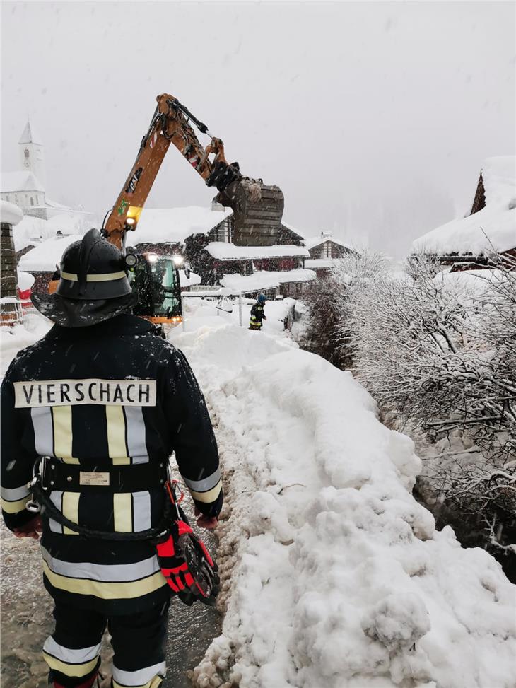 - Uomini e mezzi impegnati in Val d'Ultimo per sgomberare le strade dalla neve (Foto: Corpo permanente Vigili del fuoco) [JPG 60 KB]