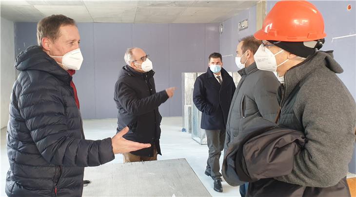 Assieme, l’assessore provinciale Bessone e i due sindaci, Klaus Rainer e Thomas Summerer, hanno preso visione del cantiere presso il Polo scolastico di San Candido. Gli interventi in programma sono suddivisi in tre lotti. Lotto 1: la parte ovest dell’edificio dell’attuale scuola media sarà demolita e sarà realizzata la sede provvisoria, e l’edificio per la nuova sede, dislocata in posizione girata rispetto a quella attuale. Lotto 2: l’edificio della scuola superiore sarà ristrutturato; la parte amministrativa, ora posizionata nell’edificio dell’ex caserma dei Vigili del fuoco, sarà spostata nell’edificio principale e sarà demolito il corpo che collega l’edificio principale all’ex caserma. Lotto 3: la parte est del vecchio edificio della scuola media sarà demolita. Saranno realizzate tre nuove unità comuni: una mensa ed una biblioteca nell’edificio della scuola media e un’aula magna nell’edificio scuola superiore. Al centro tra le due scuole verrà realizzato un nuovo cortile. Il progetto complessivo per l’opera congiunta della Provincia e dei Comuni di San Candido e di Sesto è stato elaborato dall’architetto Wolfgang Simmerle.