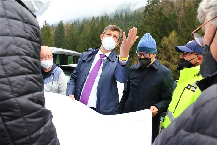 Sulla strada provinciale che attraversa la Valle di Selva dei Molini sono partiti i lavori della galleria paravalanghe. Via all'intervento con l'assessore Alfreider e il sindaco Niederbrunner.