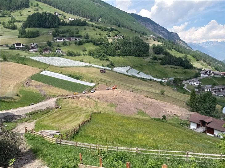 Il caposquadra Hansjörg Stricker insieme ai tecnici sta costruendo una diga di terra lunga 170 metri con un’altezza totale di circa 10 metri, che sarà rinforzata nella zona di distacco della valanga con muratura in pietre ciclopiche. Le pietre saranno prese sopra la strada statale nei pressi della valanga Durrenplatt, dove l’anno prossimo sarà costruita una nuova diga con l’obiettivo di fornire protezione alla strada statale per Martello di Dentro. La costruzione dell'argine di terra avverrà secondo le regole della geotecnica ingegneristica, spiega Fabio De Polo, direttore dell’Ufficio sistemazione bacini montani Sud. In totale, l’investimento del progetto ammonta a 600.000 euro